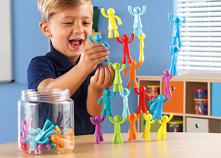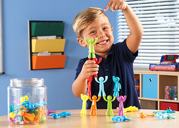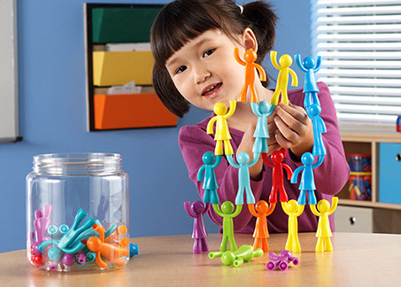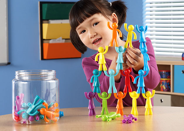 Los niños desarrollan motricidad fina y coordinación ojo-mano con este simpático kit de 32 figuras de colores. Al conectar sus brazos y piernas, los niños no sólo desarrollan la imaginación, sino que también practican conteo, clasificación y resolución de problemas. Ideal para aprender mientras juegan.