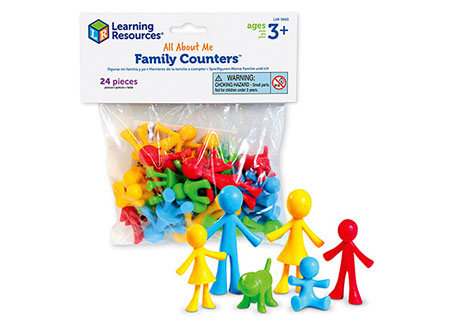 Ayuda a los más pequeños a descubrir todo sobre sí mismos y sus familias con este set de figuras. Es también ideal para actividades de conteo y clasificación. Incluye 24 figuras en 6 formas y 6 colores diferentes, que representan a miembros de la familia. Combínalos con otros sets de contadores y tendrás infinitas posibilidades de juego y aprendizaje