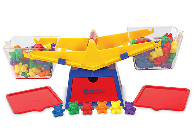 Explora los conceptos de medición con Baby Bear Balance. Esta balanza cuenta con un práctico cajón de almacenamiento. Los recipientes, que son transparentes y fáciles de retirar, permiten pesar tanto sólidos como líquidos. El juego incluye 102 adorables ositos en seis colores diferentes. Cada osito mide 2.5 cm y pesa 4 gramos. ¡Diviértete aprendiendo mientras juegas!