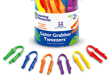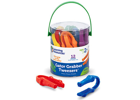 Trabajar habilidades motoras finas es divertido cuando los niños pueden usar “lagartos” para agarrar objetos.