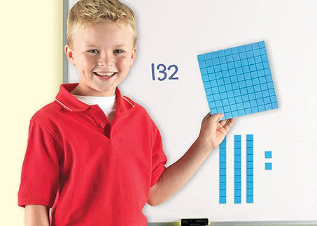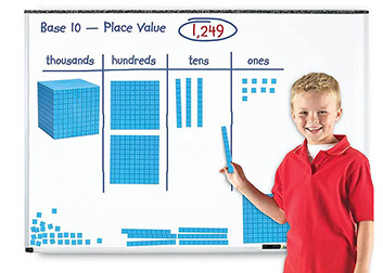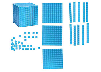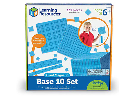 Kit de piezas magnéticas que permite enseñar los conceptos de base diez y valor de posición en pizarra blanca. El set incluye 131 piezas magnéticas que representan 100 unidades, 20 decenas, 10 centenas y 1 cubo.