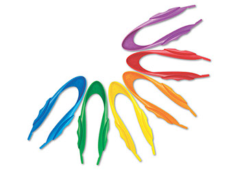 Incluye 12 pinzas de 15 cm en 6 colores, rojo, azul, verde, amarillo, naranja y morado.