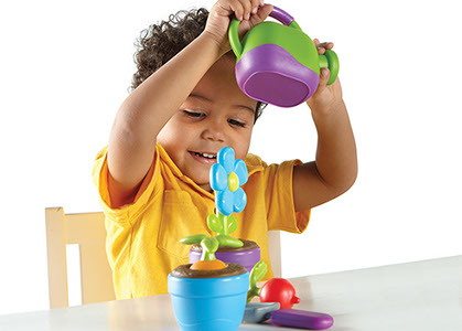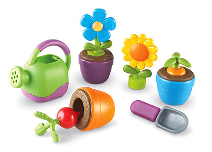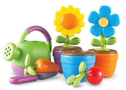 Este colorido kit ofrece a los niños pequeños una forma emocionante de plantar y cosechar flores y verduras mientras desarrollan habilidades sociales y de vocabulario. Con piezas duraderas y fáciles de agarrar, como una regadera, una pala y tres macetas, los niños pueden disfrutar de un juego práctico que despierta la curiosidad y fomenta el juego de roles. La zanahoria, el rábano y las coloridas flores cultivan una apreciación por la naturaleza y brindan infinitas oportunidades para un juego creativo e interactivo.