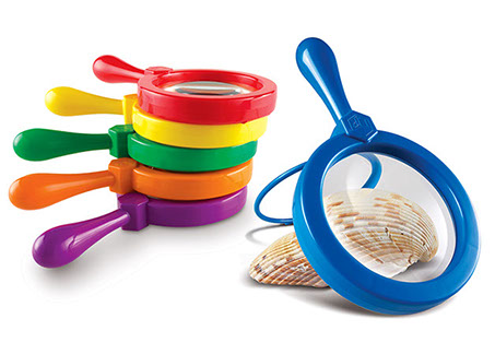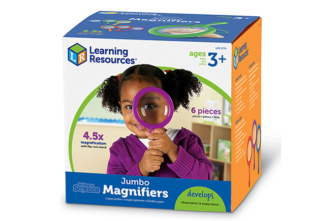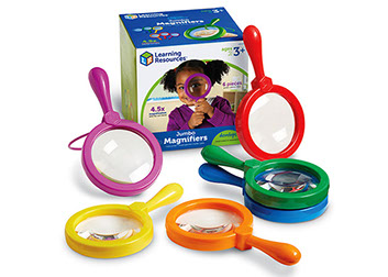 Este set de 6 lupas extra grandes diseñado para manos pequeñas permite a los niños observar plantas, insectos y más, con un aumento de 4.5x en un lente de 11 cm. Su característica principal es la base incorporada que permite una observación "manos libres". La herramienta perfecta para jóvenes científicos.