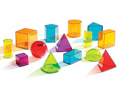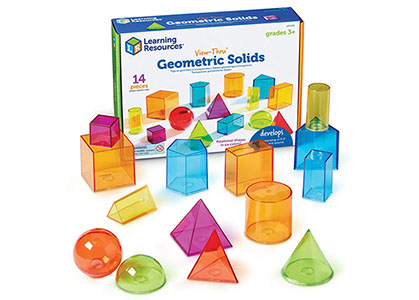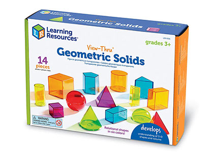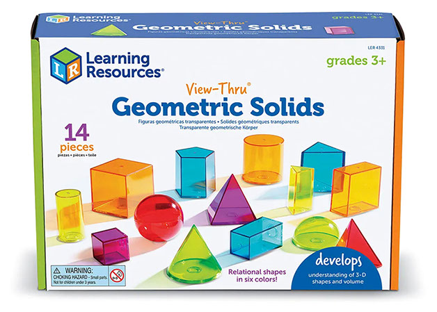 Este kit de formas geométricas ofrece una manera práctica de explorar la geometría, el volumen y otros conceptos de medición. Incluye cubo grande, cubo pequeño, rectángulo grande, rectángulo pequeño, prisma pentagonal, prisma triangular grande, prisma triangular pequeño, pirámide cuadrada, pirámide triangular, cilindro grande, cilindro pequeño, cono, esfera y hemisferio.